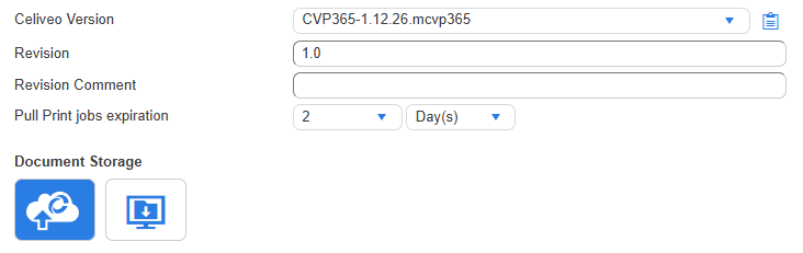 - Celiveo 365 Cloud Storage: Select this to store documents in the Celiveo 365 cloud. Documents can be released from any Celiveo-enabled printer.