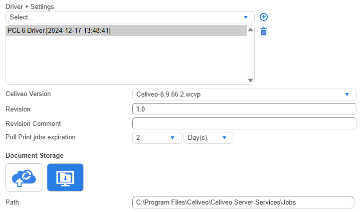 - Celiveo 365 Cloud Storage: Select this to store documents in the Celiveo 365 cloud. Documents can be released from any Celiveo-enabled printer.