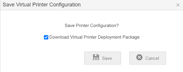 - When prompted, click Save. Make sure the Download Virtual Printer Deployment Package checkbox is enabled.